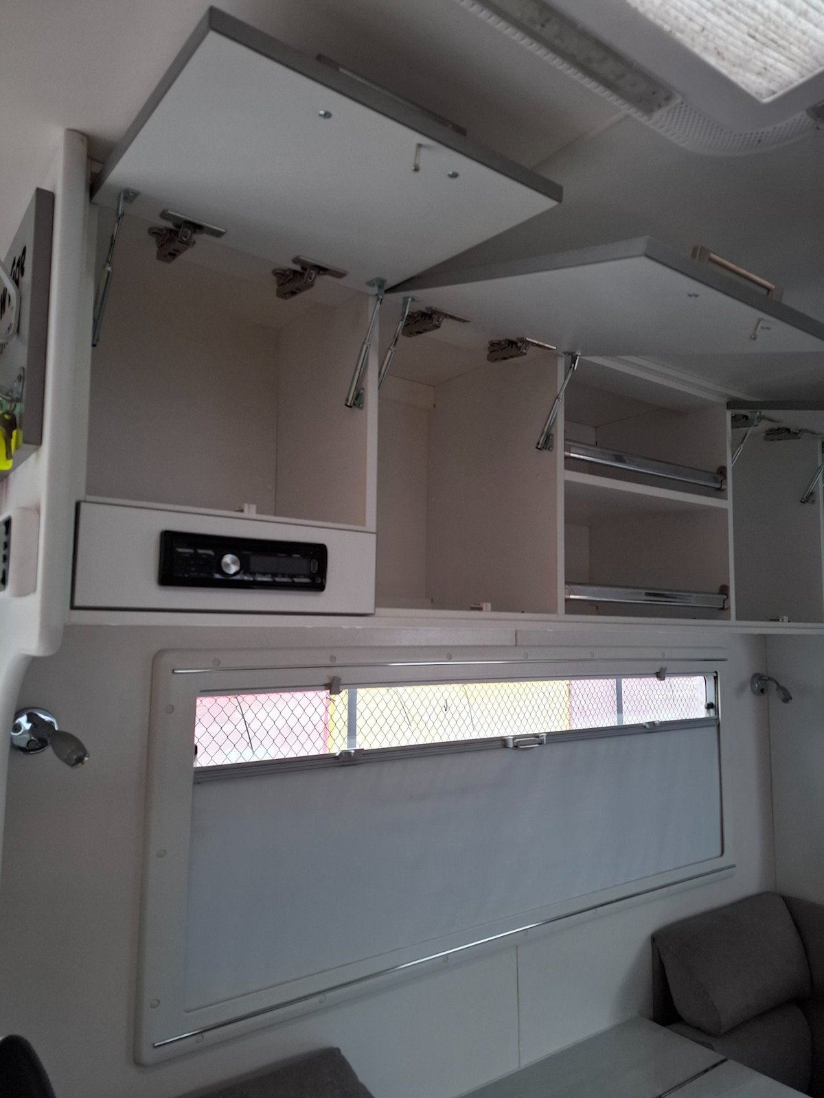 Very comfortable van in good condition. Regularly serviced and only ever used for local trips. Nonsmoking owners. Easy to tow and set up. Lots of storage space inside including 2 slide out bins in kitchen area, multiple overhead lockers, bedside clothes hanging space, underbed space + full width front storage boot. Good quality, full, Aussie Wide Annexe + privacy screen for van long side. Included are poles, pegs and ropes, a fresh water and a waste hose, portable, grey water tank and electricity cord. Roll out Dometic awning and Aussie Traveller anti-flappers. 2 large fresh air hatches in main living area and 2 in the bathroom area. Thetford 4 burner gas stovetop and grill (hardly used), Swift Rangehood, Samsung Microwave and large sized Thetford 3-way fridge and freezer. Trade fitted Trumatic E2400 gas heater which uses the standard 9Kg gas bottles. Full ensuite with separate shower and toilet + wall mounted Daiwoo Mini Washing Machine. 24″ NCE TV with DVD player + Clarion Stereo radio/CD/USB player with both internal and external speakers. Drifter unit for water and battery monitoring. Island bed with Queen sized mattress, topper and bedspread. Electric/Gas hot water unit. Solar provision Anderson plug at the front of the van.ery comfortable van in good condition. Regularly serviced and only ever used for local trips. Nonsmoking owners. Easy to tow and set up. Lots of storage space inside including 2 slide out bins in kitchen area, multiple overhead lockers, bedside clothes hanging space, underbed space + full width front storage boot. Good quality, full, Aussie Wide Annexe + privacy screen for van long side. Included are poles, pegs and ropes, a fresh water and a waste hose, portable, grey water tank and electricity cord. Roll out Dometic awning and Aussie Traveller anti-flappers. 2 large fresh air hatches in main living area and 2 in the bathroom area. Thetford 4 burner gas stovetop and grill (hardly used), Swift Rangehood, Samsung Microwave and large sized Thetford 3-way fridge and freezer. Trade fitted Trumatic E2400 gas heater which uses the standard 9Kg gas bottles. Full ensuite with separate shower and toilet + wall mounted Daiwoo Mini Washing Machine. 24″ NCE TV with DVD player + Clarion Stereo radio/CD/USB player with both internal and external speakers. Drifter unit for water and battery monitoring. Island bed with Queen sized mattress, topper and bedspread. Electric/Gas hot water unit. Solar provision Anderson plug at the front of the van.